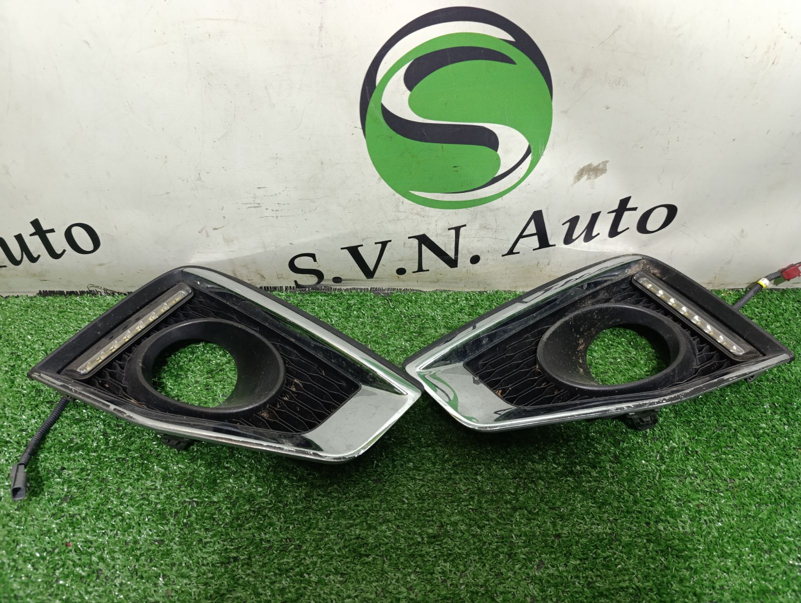 Накладка противотуманной фары (пара)Накладки противотуманных фар Nissan Elgrand e52. Рест. 2014г., комплектация "Highway Star URBAN CROME" В комплекте с диодными ходовыми огнями.